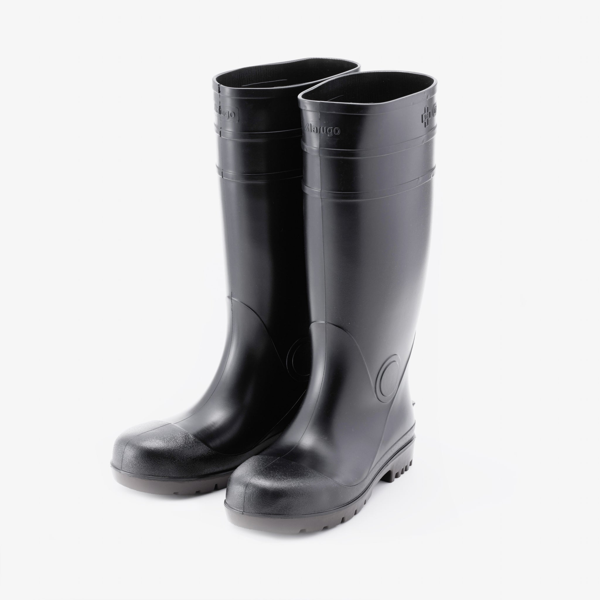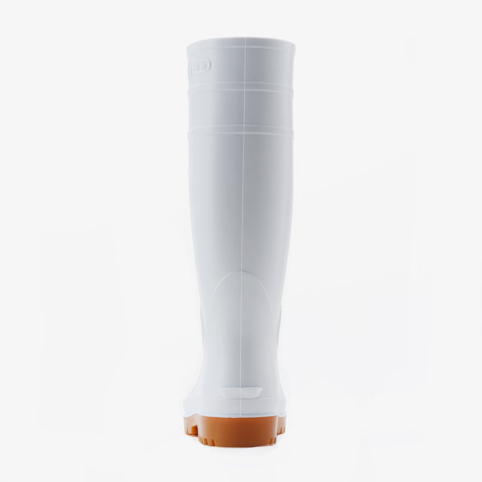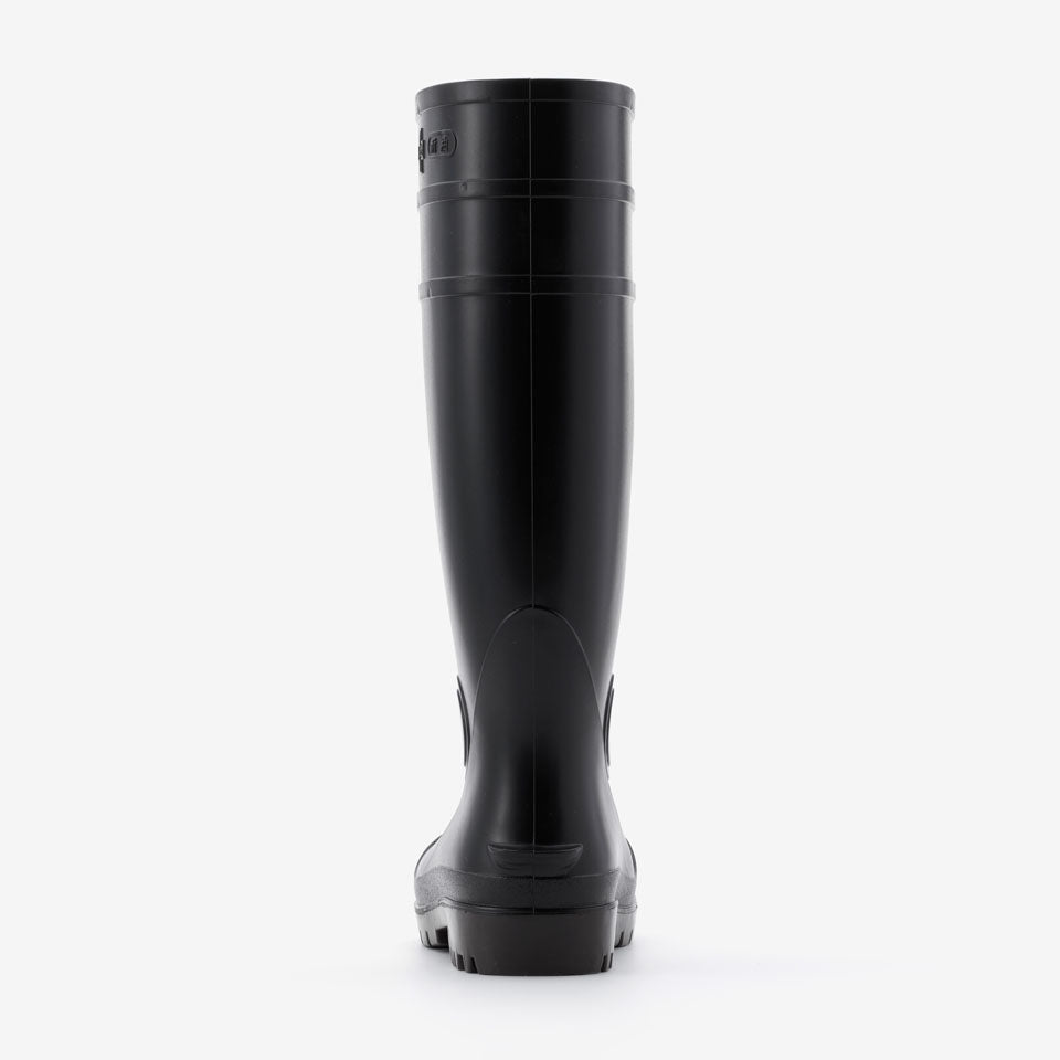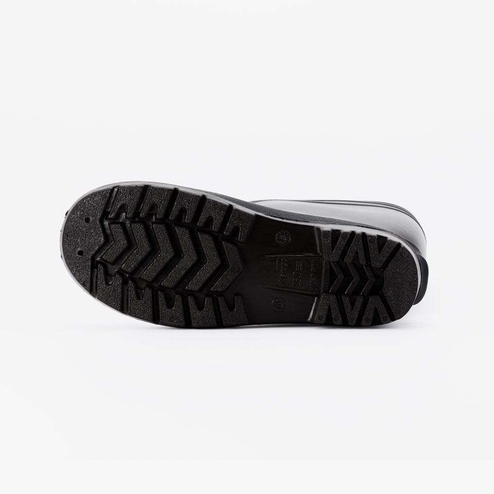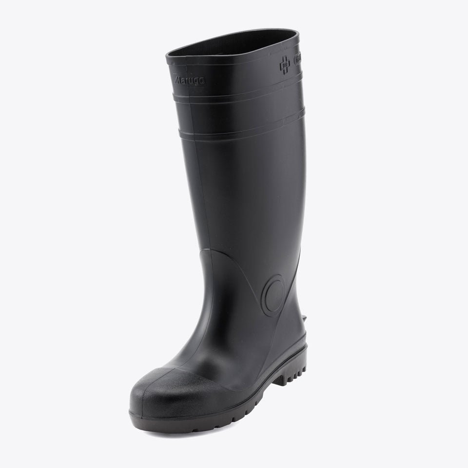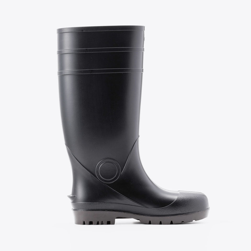 抗菌加工・耐油仕様のPVC長靴、安全プロハークス#870。つま先を保護する先芯入りタイプ。取り外しが可能なインソールの下には凹凸があり、空気を放出し長靴内のムレを軽減します。長靴の中にズボンを入れてもズレ上がりにくいズボン止めを採用。土木建設・食品加工に最適です。