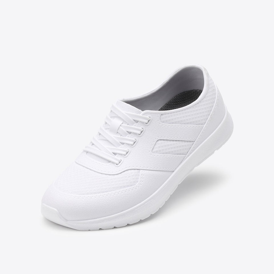 完全防水のキッズスニーカー「ランランRAIN」。発泡PVC素材を使用し、軽さと足当たりのよさを実現しました。コンパクトなので収納場所にも困らず、持ち運びにも便利です。完全防水仕様のため、雨の日の通学やアウトドアシーンにもおすすめです。インソールを取り外せば、ハーフサイズの調整も可能です。