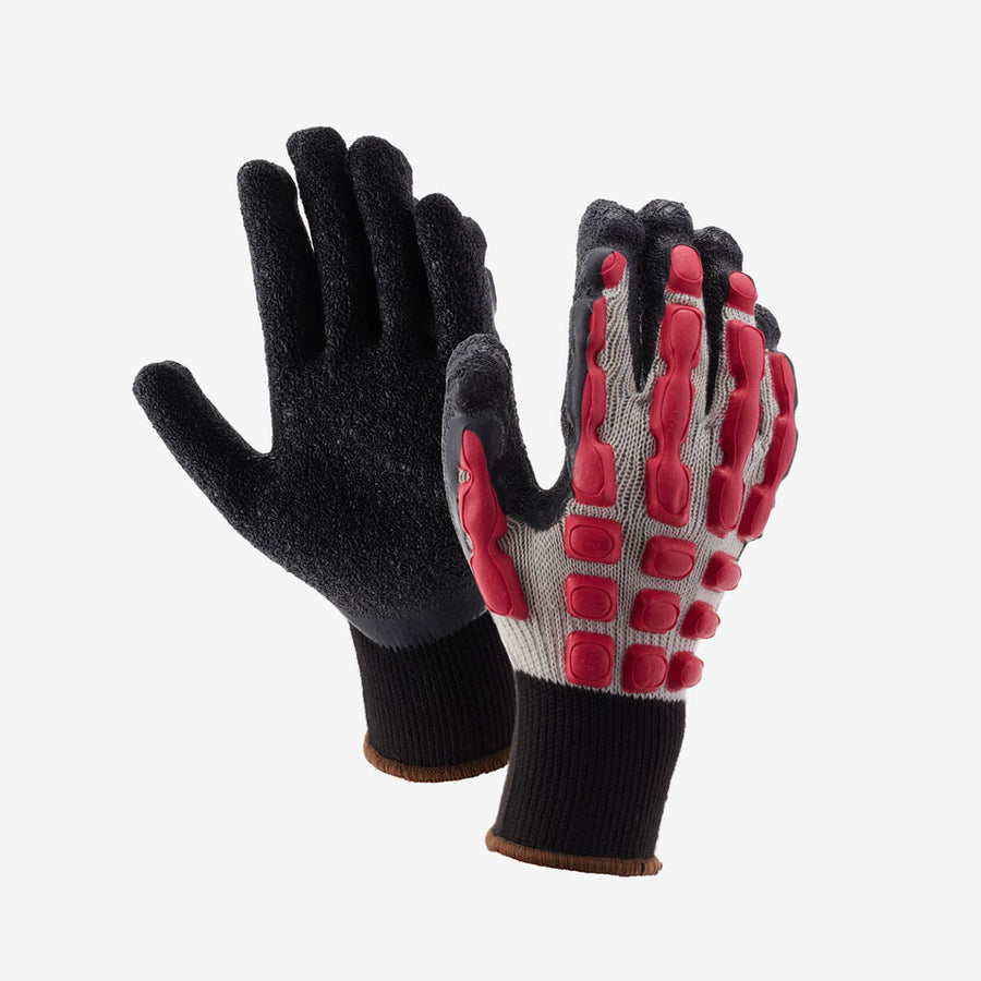 手甲保護手袋 まもるくん 。手甲にある衝撃吸収セルが打ち損じ、挟み込みなどの衝撃を軽減します。肉厚で丈夫なハードタイプ。