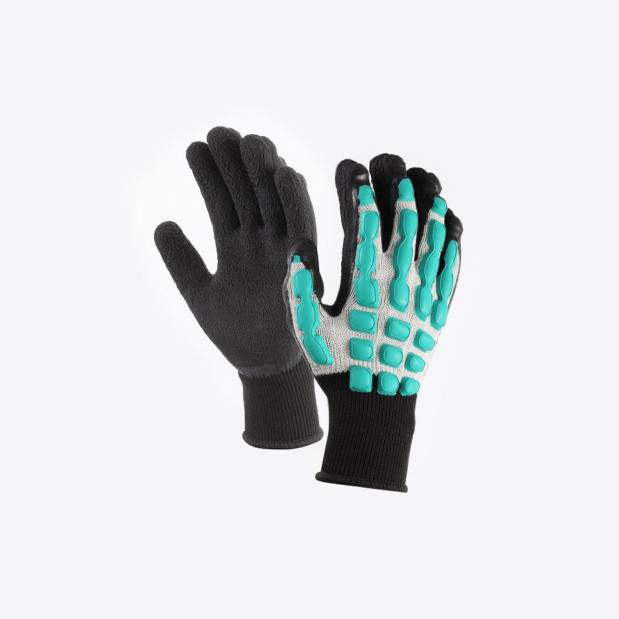 手甲保護手袋 まもるくん 。手甲にある衝撃吸収セルが打ち損じ、挟み込みなどの衝撃を軽減します。作業性の良いソフトタイプ。