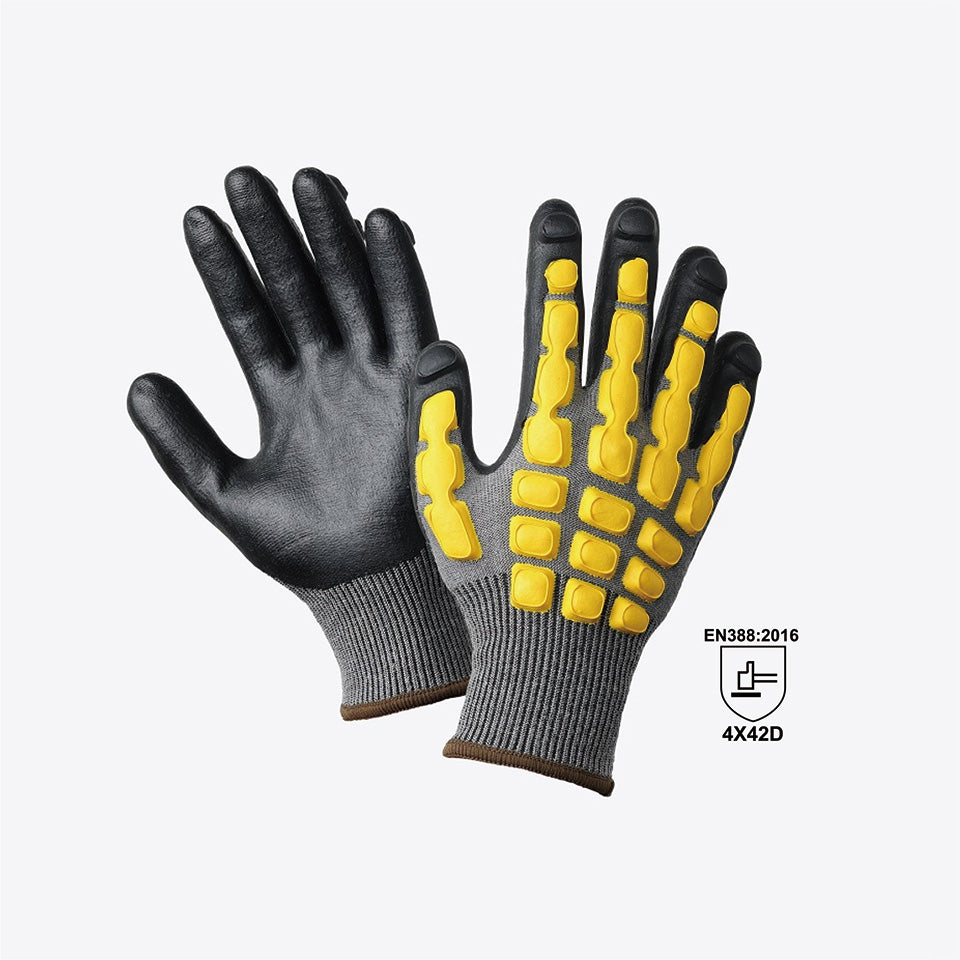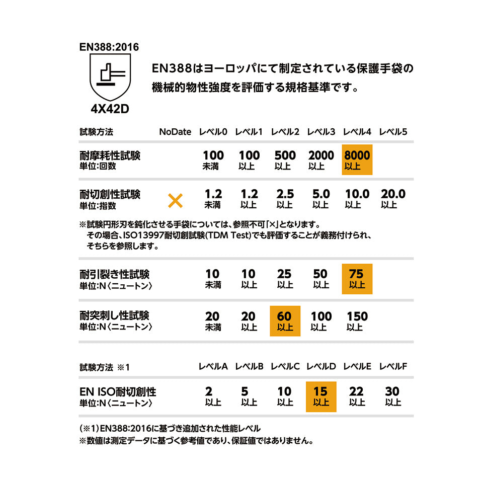 欧州統一規格EN388:2016カットレベルX/Dの15ゲージ耐切創手袋。高強度の超高分子量ポリエチレン繊維ADAMAS®を使用し、ソフトな着け心地を実現。更に耐油性、耐摩耗性に優れるニトリルを背抜きコーティングする事で、強度と高いフィット感を両立しています。甲側には打撃や挟み込みから手指を守る衝撃吸収セルを配置。作業中の様々なリスクを緩和します。