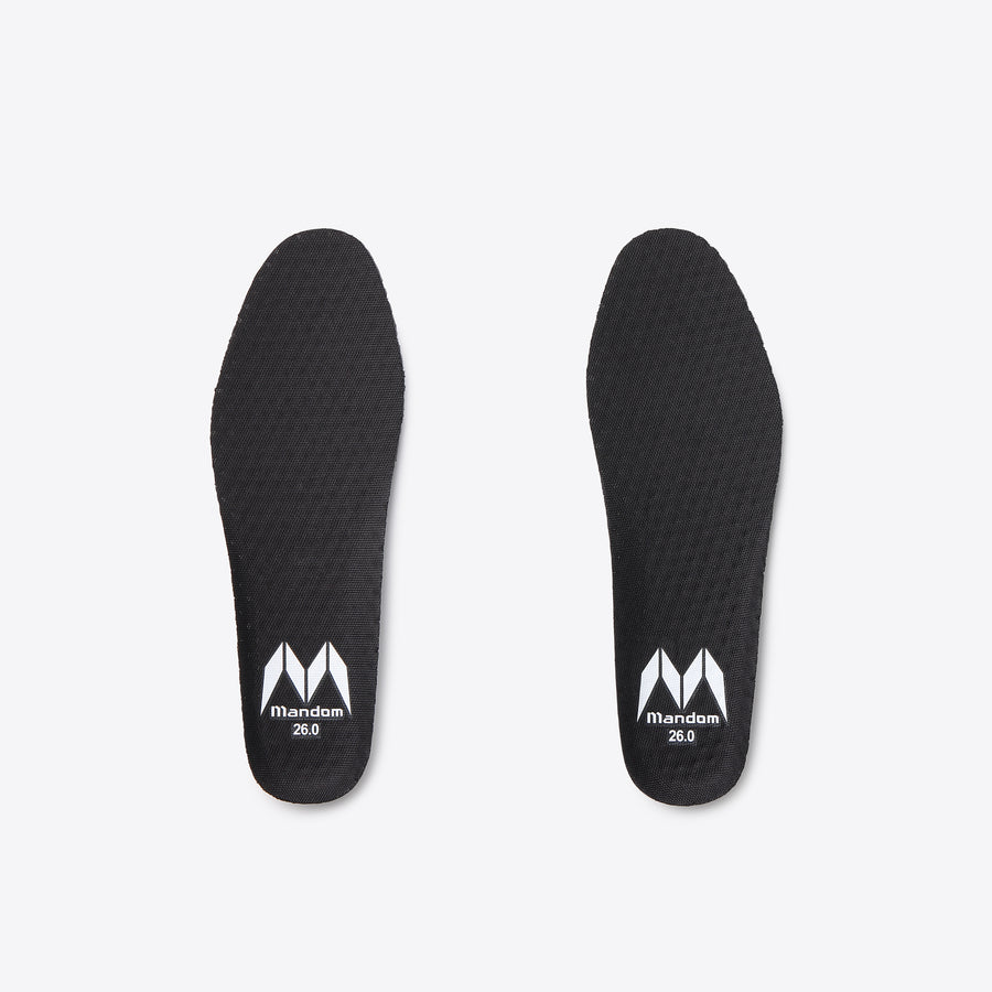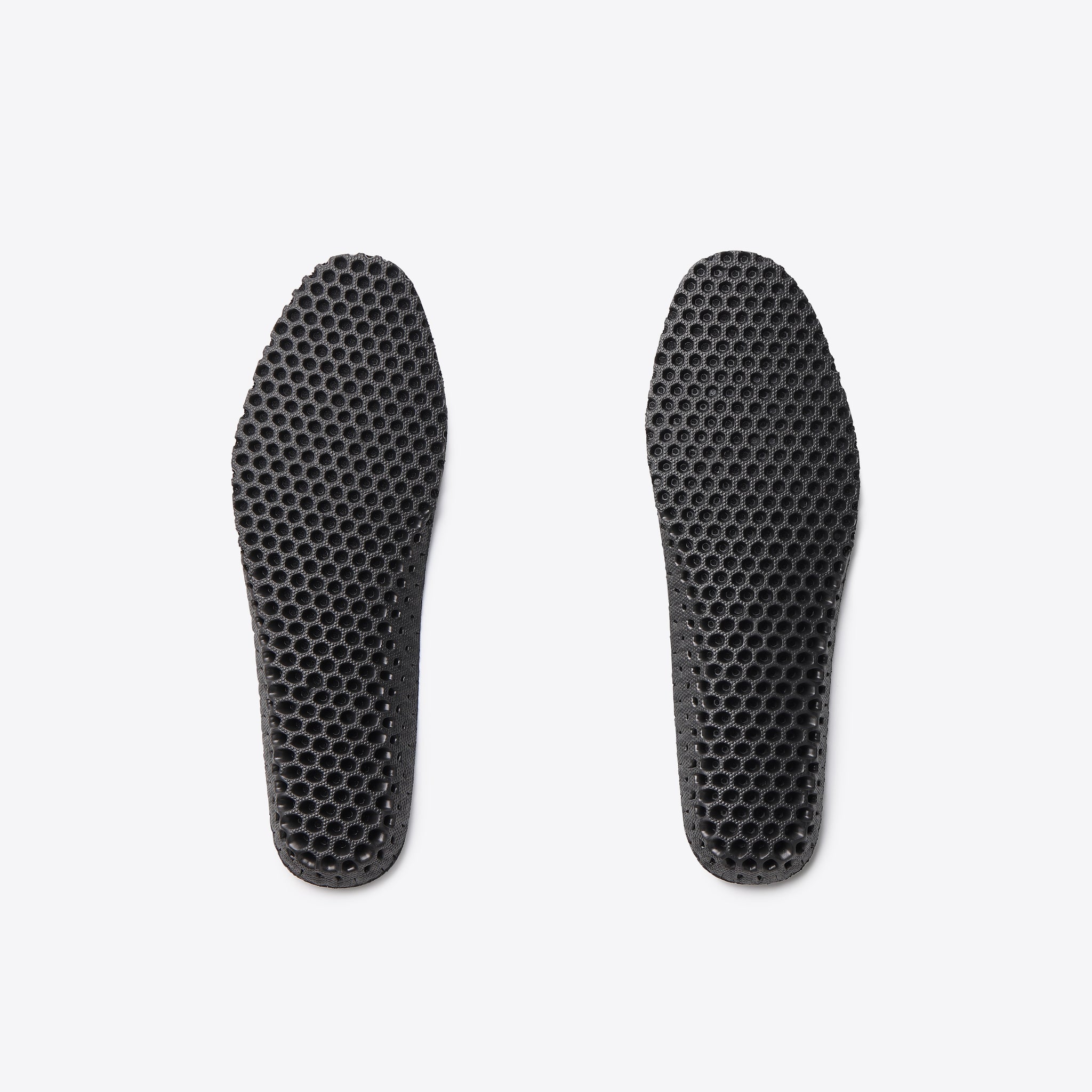 通気孔を設けることで、ムレにくく軽やかな履き心地を実現したインソール。かかと部の立体形状が足のブレを抑え、安定した履き心地をサポートします。