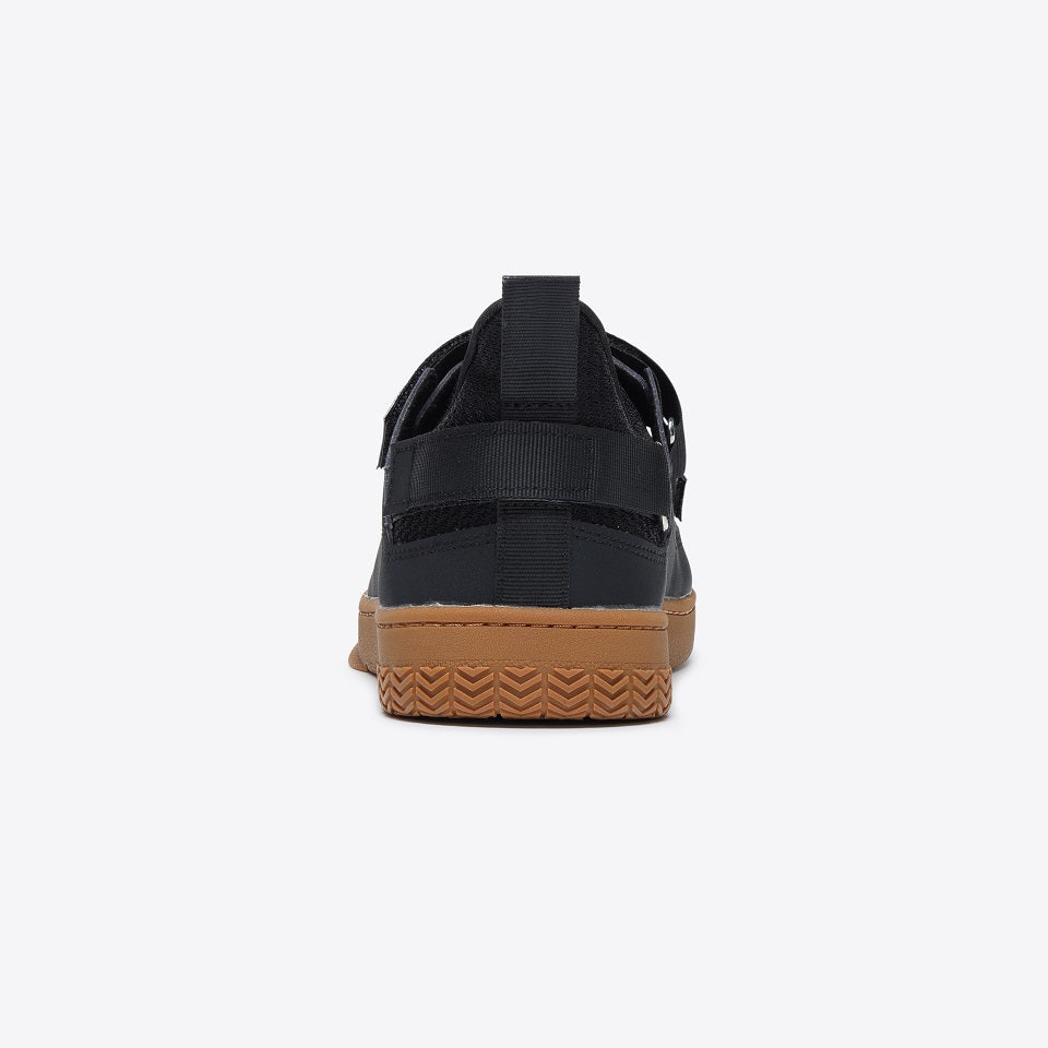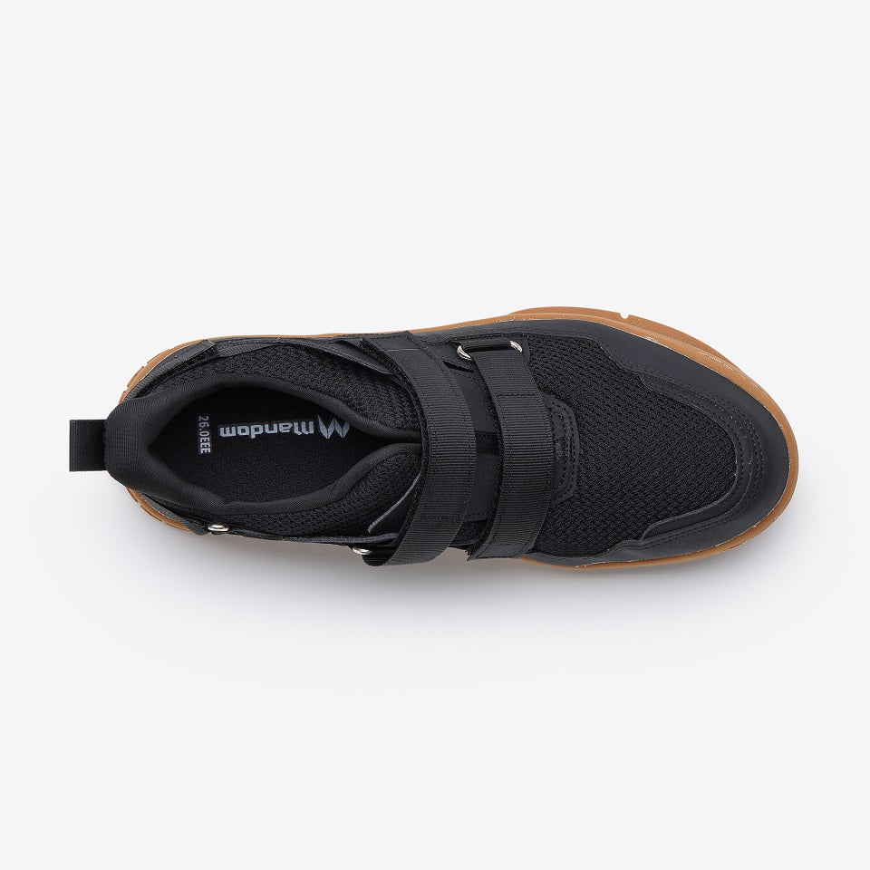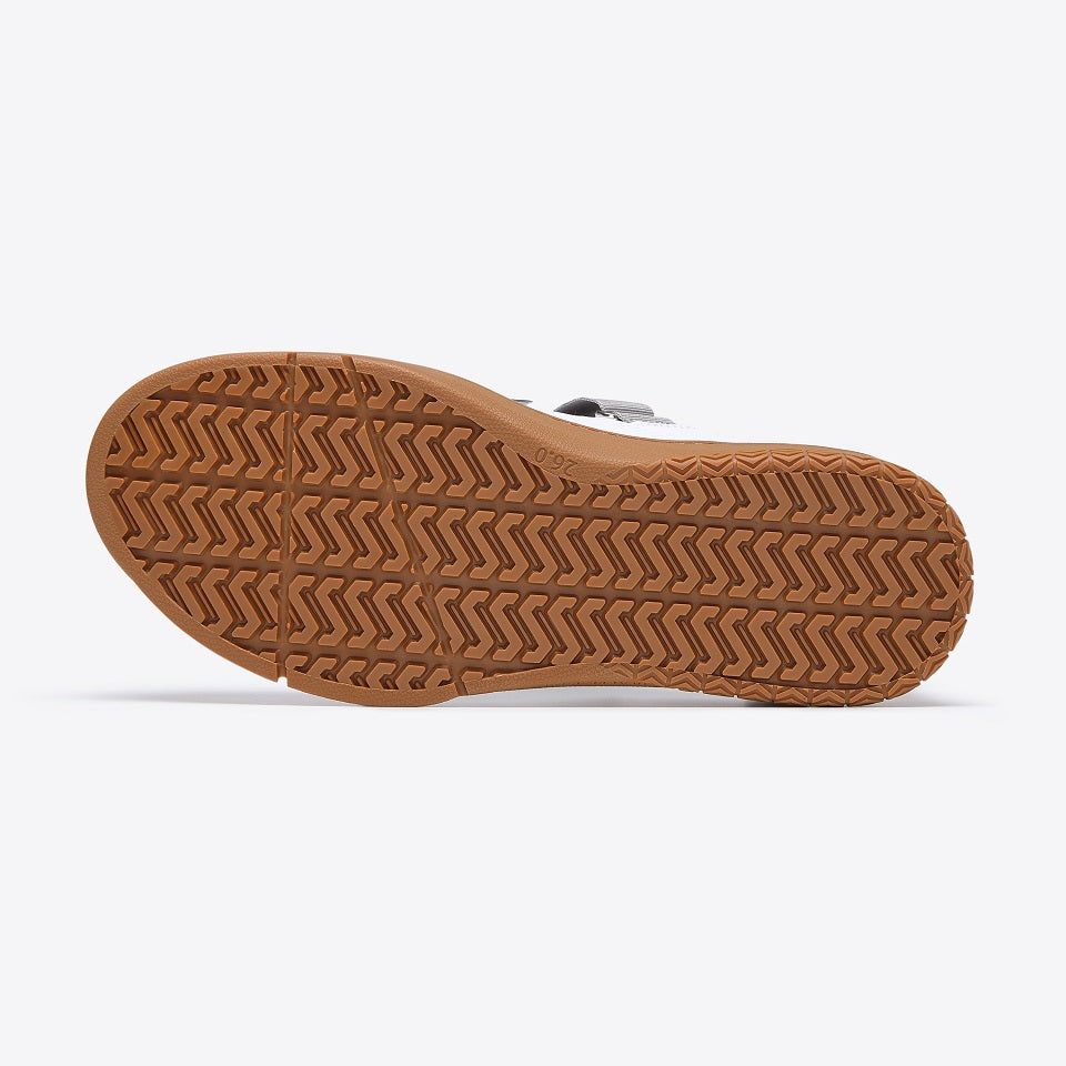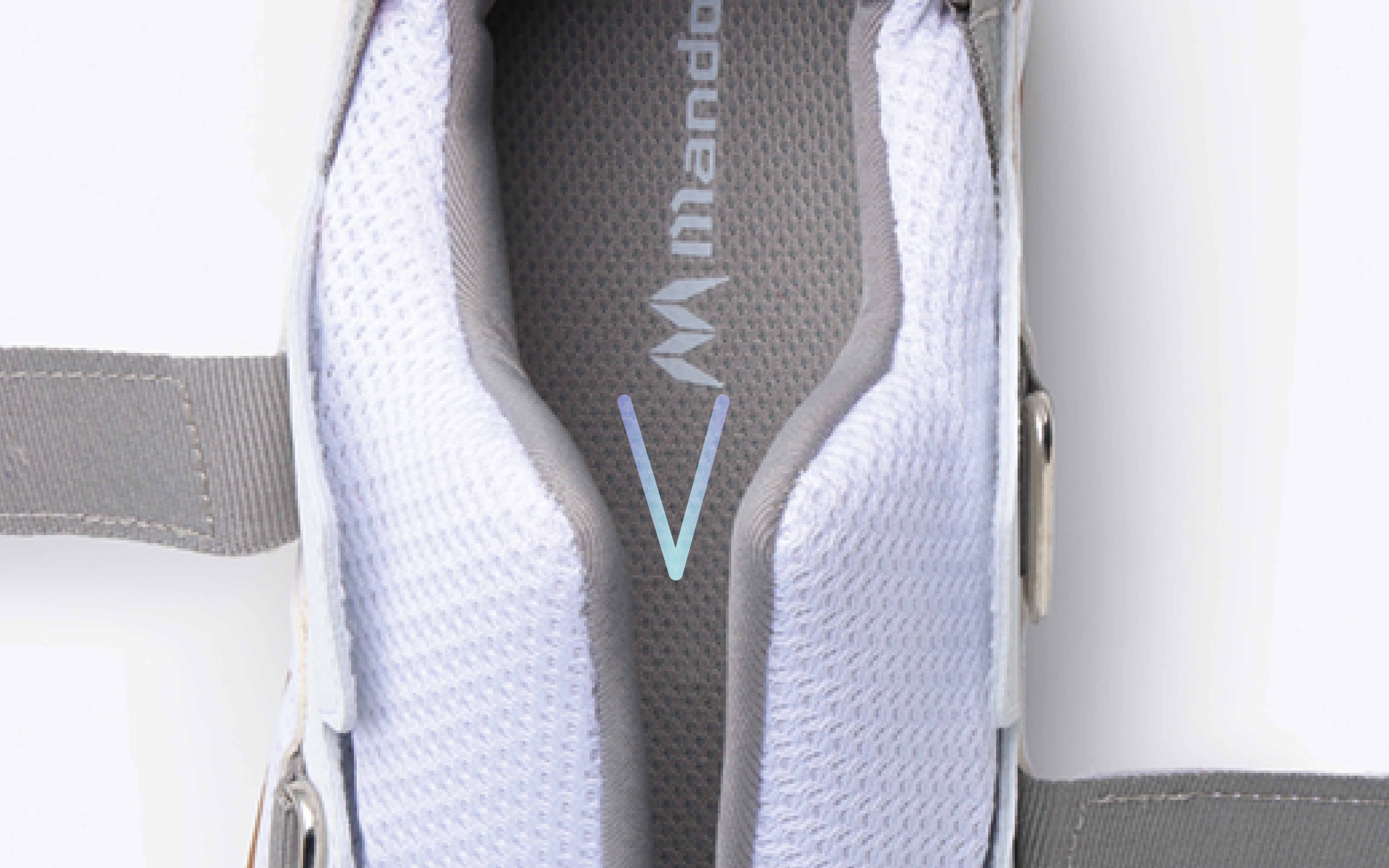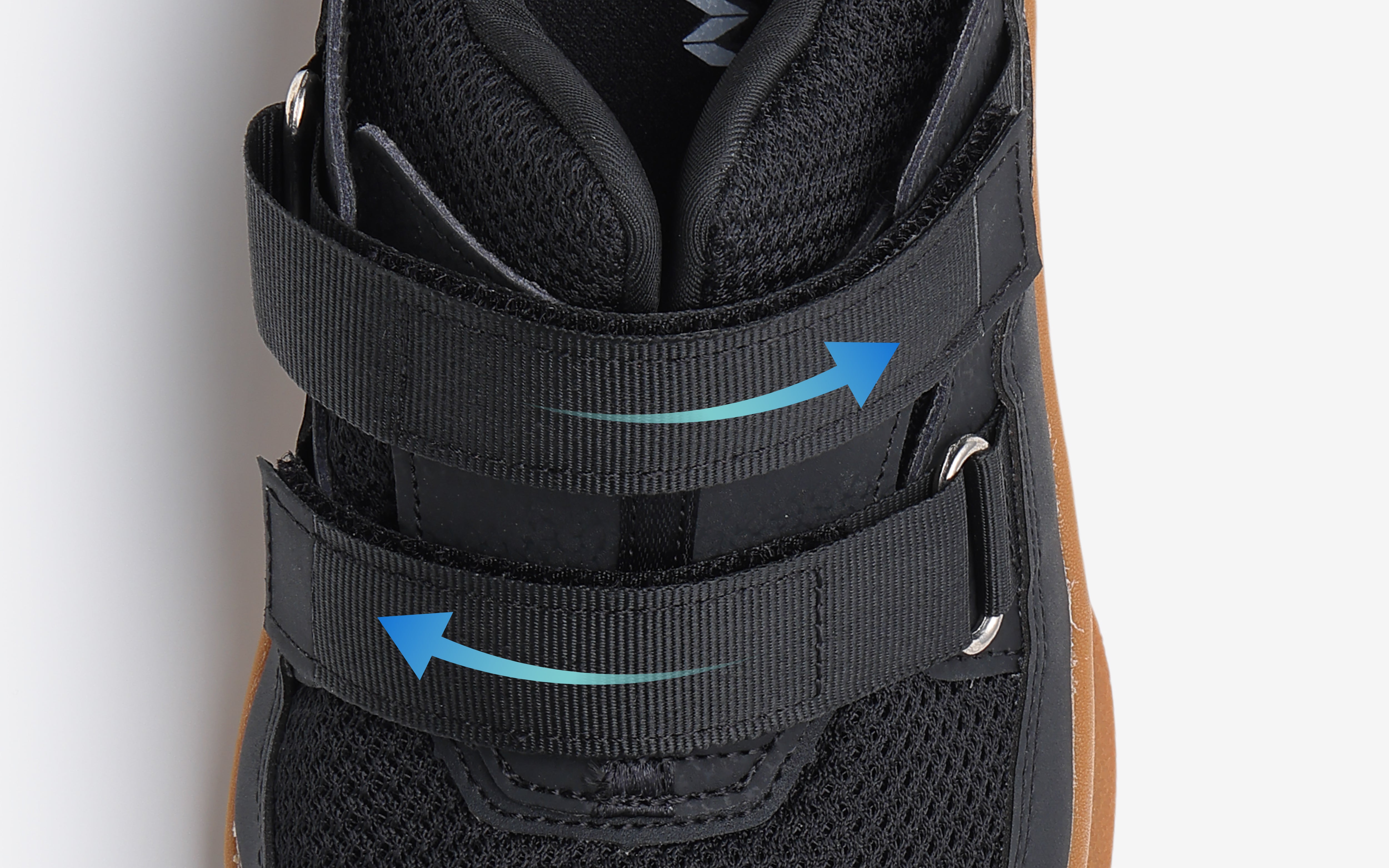 かかと上部に調整ベルトを配置。ベルトを締める事で、自分のかかとのカーブに合わせる事が可能。脱げにくく、足との一体感を高めます。
