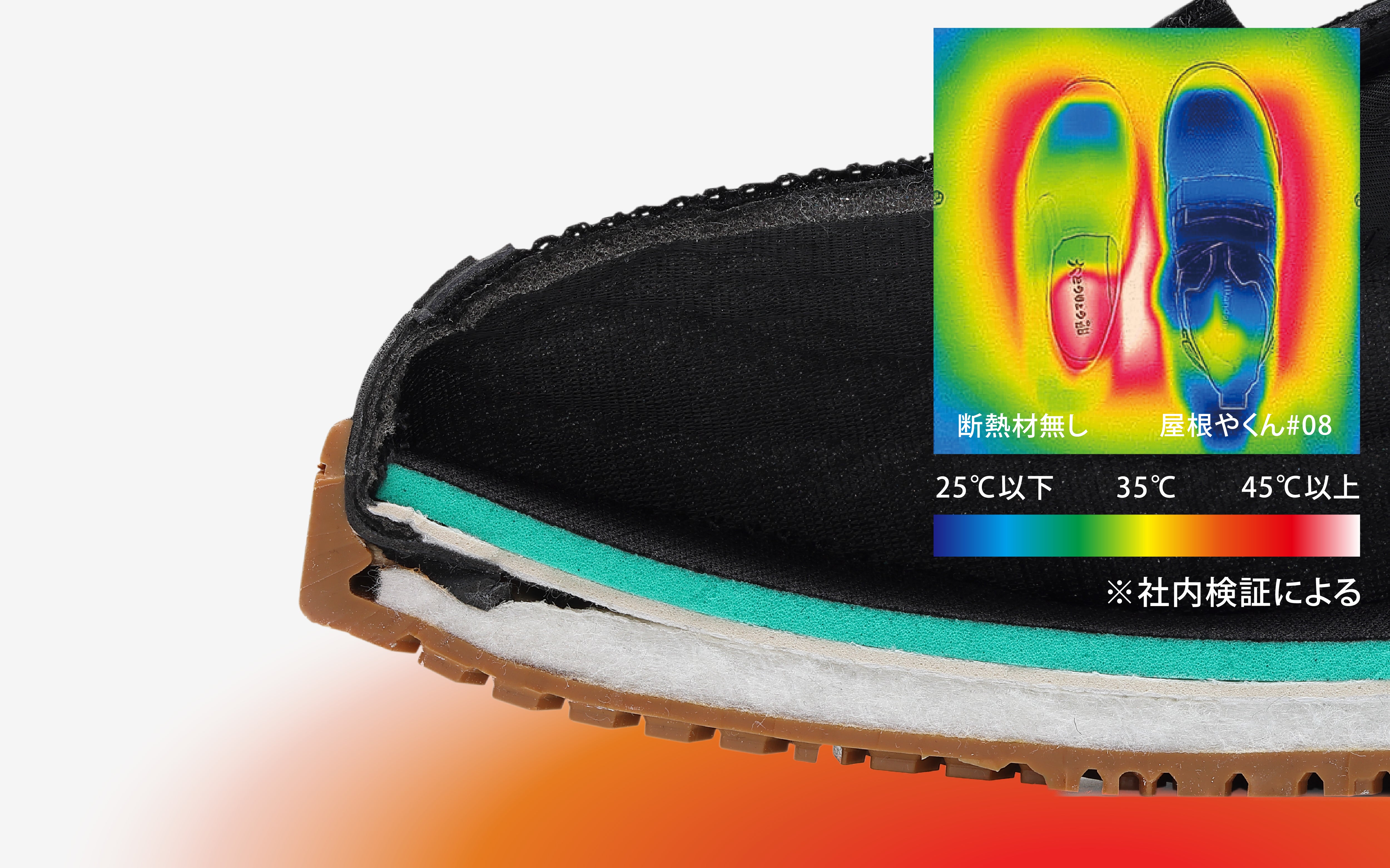 ※JIS T8101の付加的性能『靴底の高温熱伝導性試験』にて評価。最高区分(区分2)の値をクリア。
