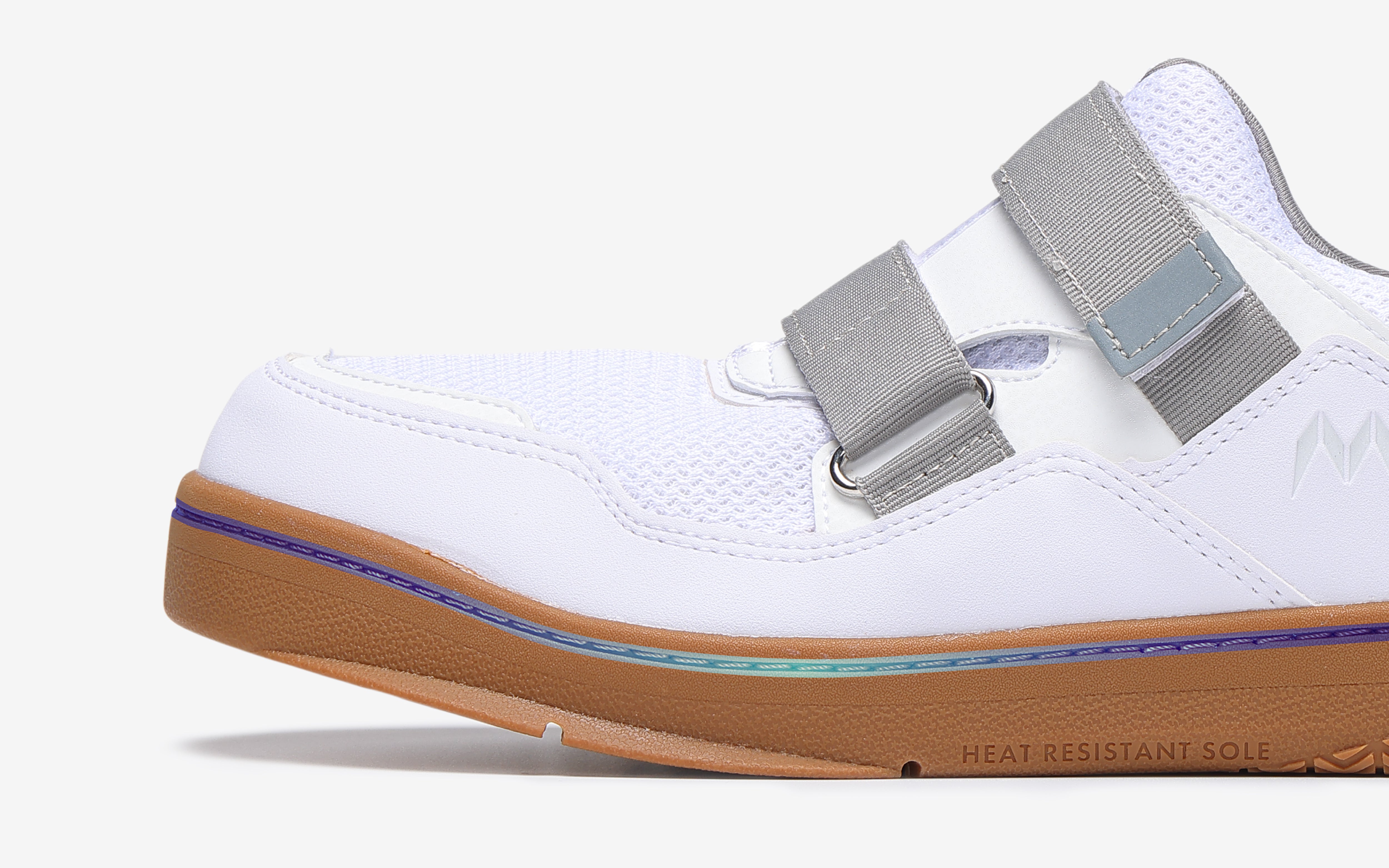 マンダム屋根やくん#08のソールには、足裏を熱から守る断熱ソールと滑りを軽減する耐滑意匠(ウルトラソール)を採用。さらにシュータンには「甲スプリット構造」を採用し、屈み作業時の圧迫感を軽減。長時間の作業も快適にサポートします。屋根作業向けの作業靴として最適な一足です。