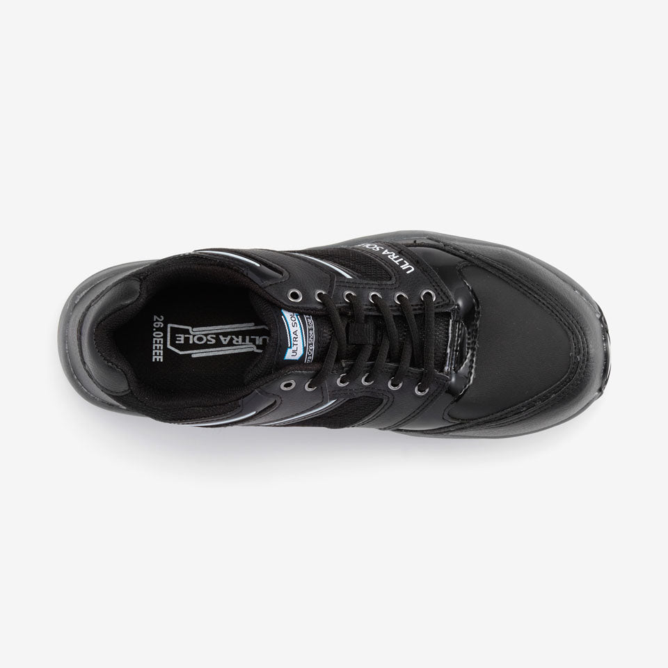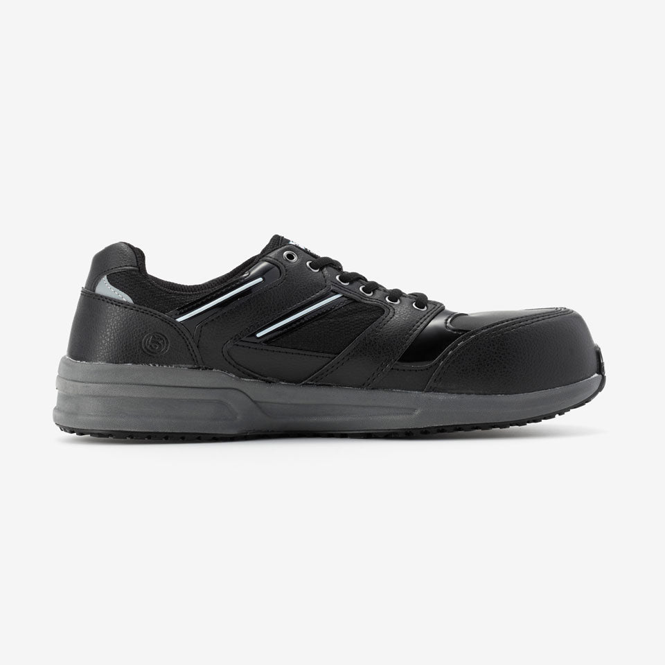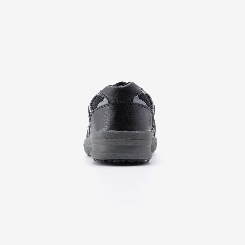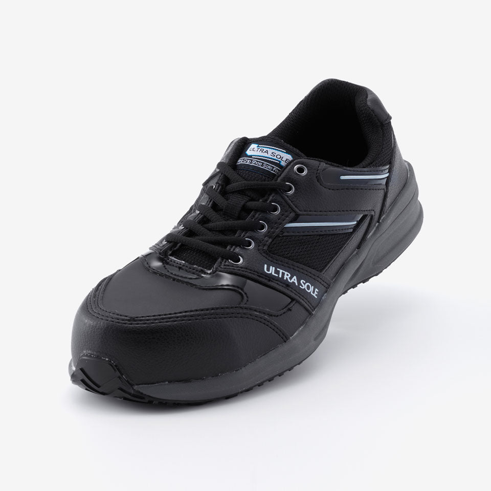 丸五が開発した耐滑底『ウルトラソール』仕様のプロスニーカー。水、油膜などの床面で縦方向だけでなく、横方向でも強力な耐滑性能を発揮します。またクッション性の優れた肉厚のEVAミッドソールは、足への負担を軽減します。