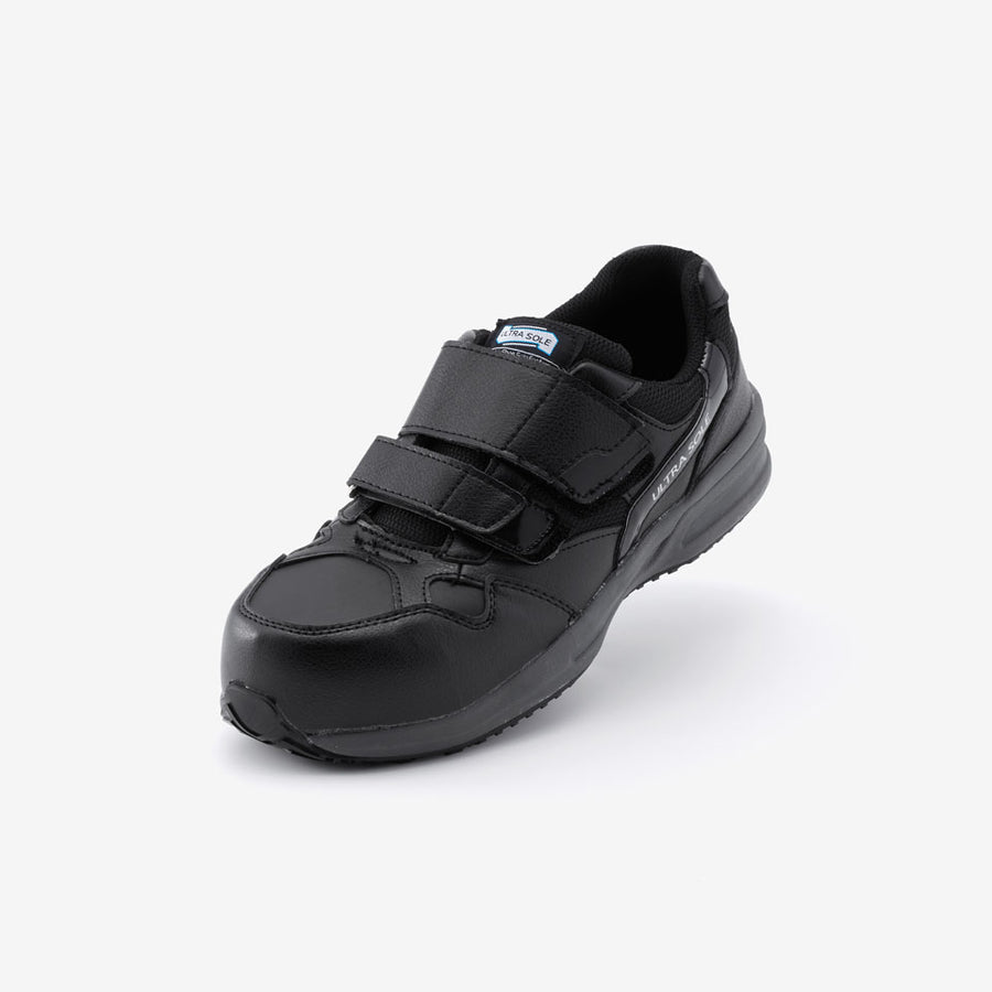 丸五が開発した耐滑底『ウルトラソール』仕様のプロスニーカー。水、油膜などの床面で縦方向だけでなく、横方向でも強力な耐滑性能を発揮します。またクッション性の優れた肉厚のEVAミッドソールは、足への負担を軽減します。