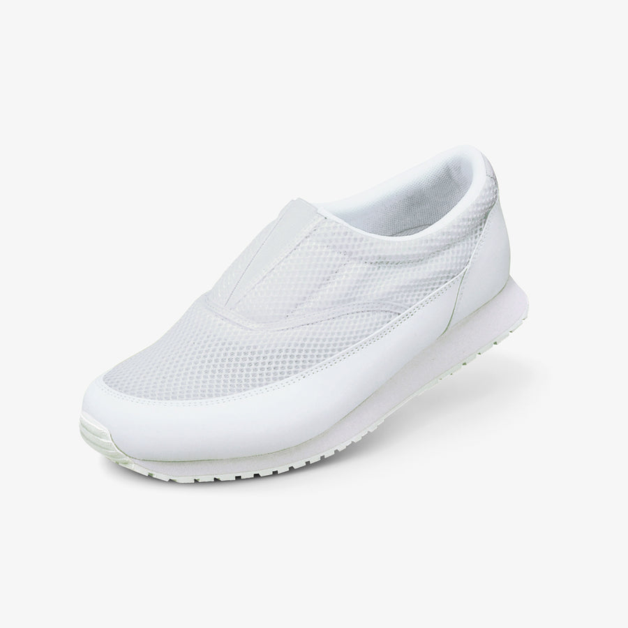 静電気による作業障害や事故を防ぐ帯電防止機能の付いたスリッポンタイプ作業靴。EVAミッドソールとラバーソールの組み合わせで優れたクッション性と軽量化を実現。床面を汚しにくいノンマーキング配合。