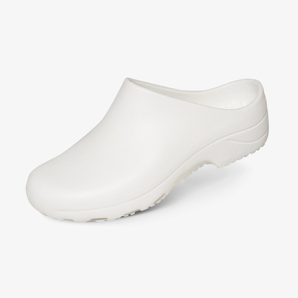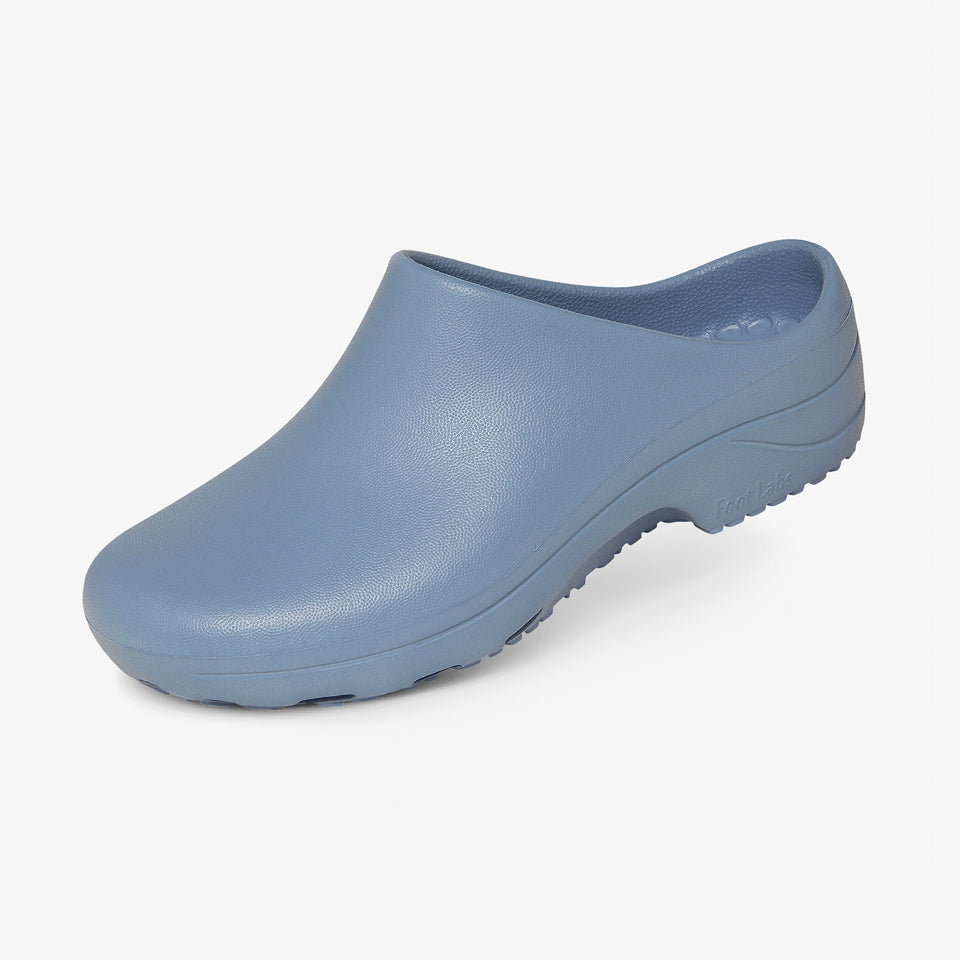 フットラボは、軽量のサボタイプシューズ。足裏の接地面積が広いので、安定性に優れています。シンプルなデザインは衛生的で、医療現場に最適です。