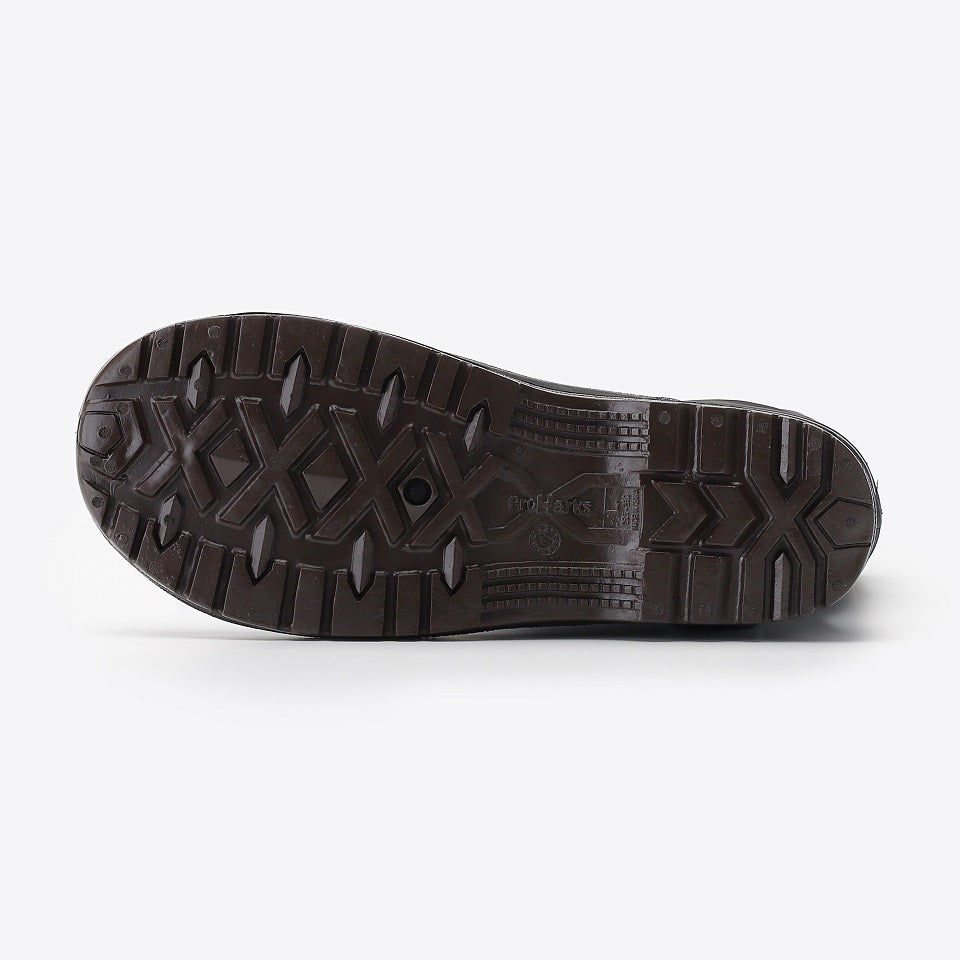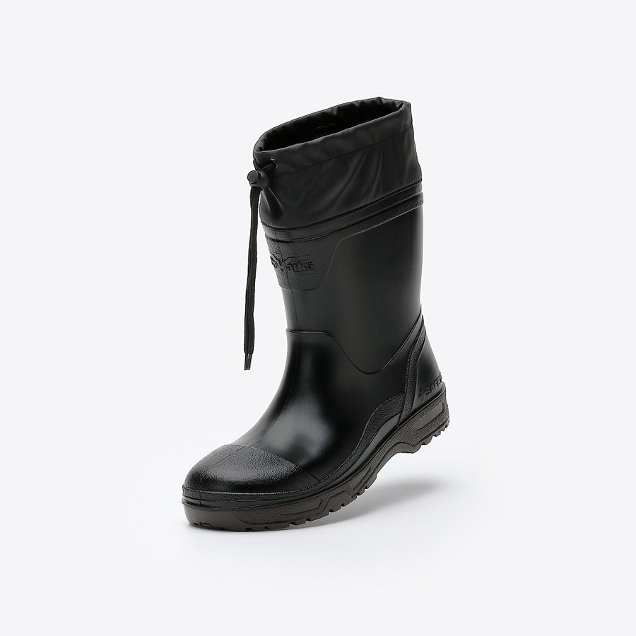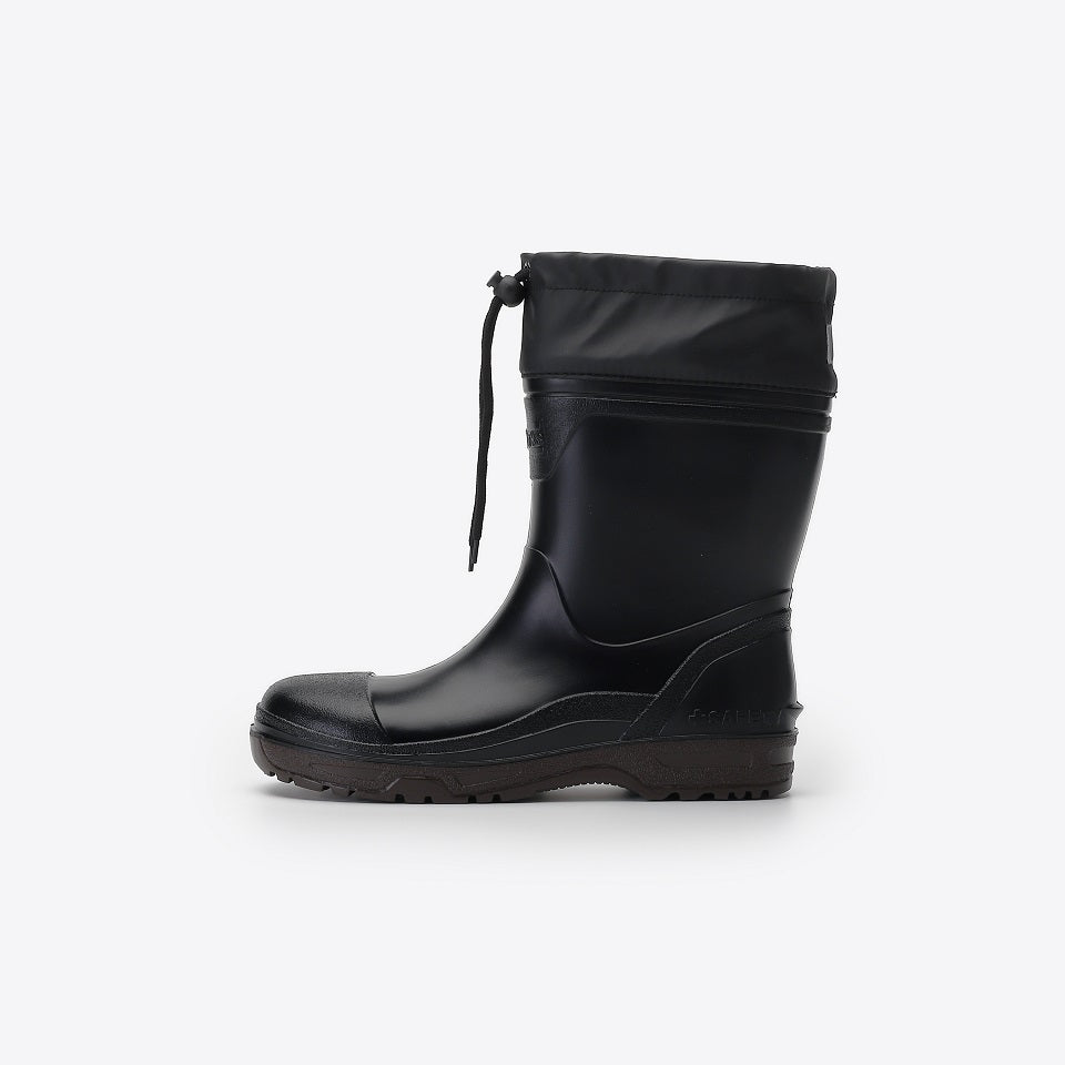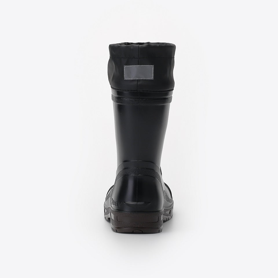 抗菌加工・耐油仕様のPVC長靴。水や異物の侵入を防ぐフードとつま先を保護する先芯入りタイプ。取り外しが可能なインソールの下には凹凸があり、空気を放出し長靴内のムレを軽減します。長靴の中にズボンを入れてもズレ上がりにくいズボン止めを採用。土木建設・食品加工に最適です。