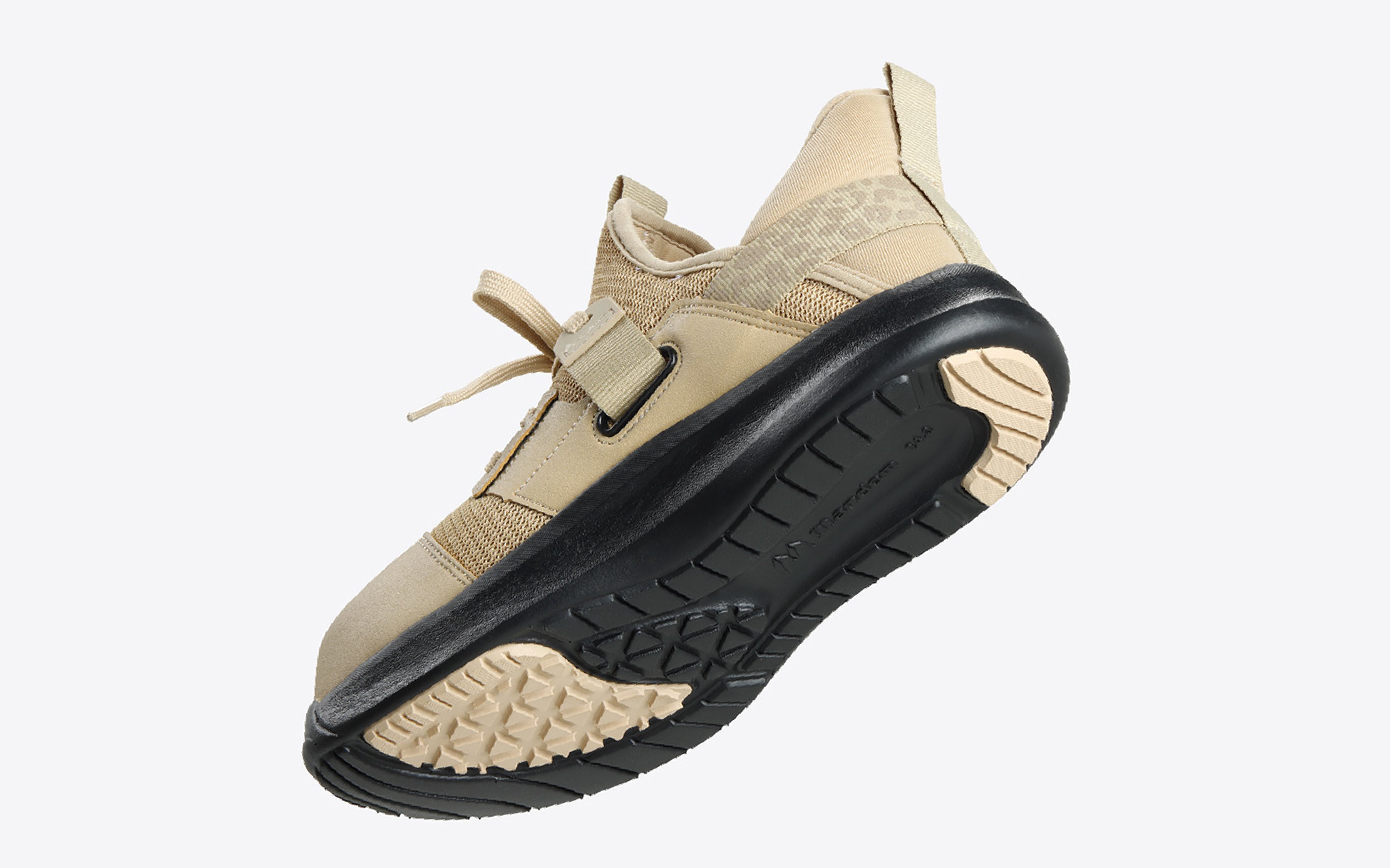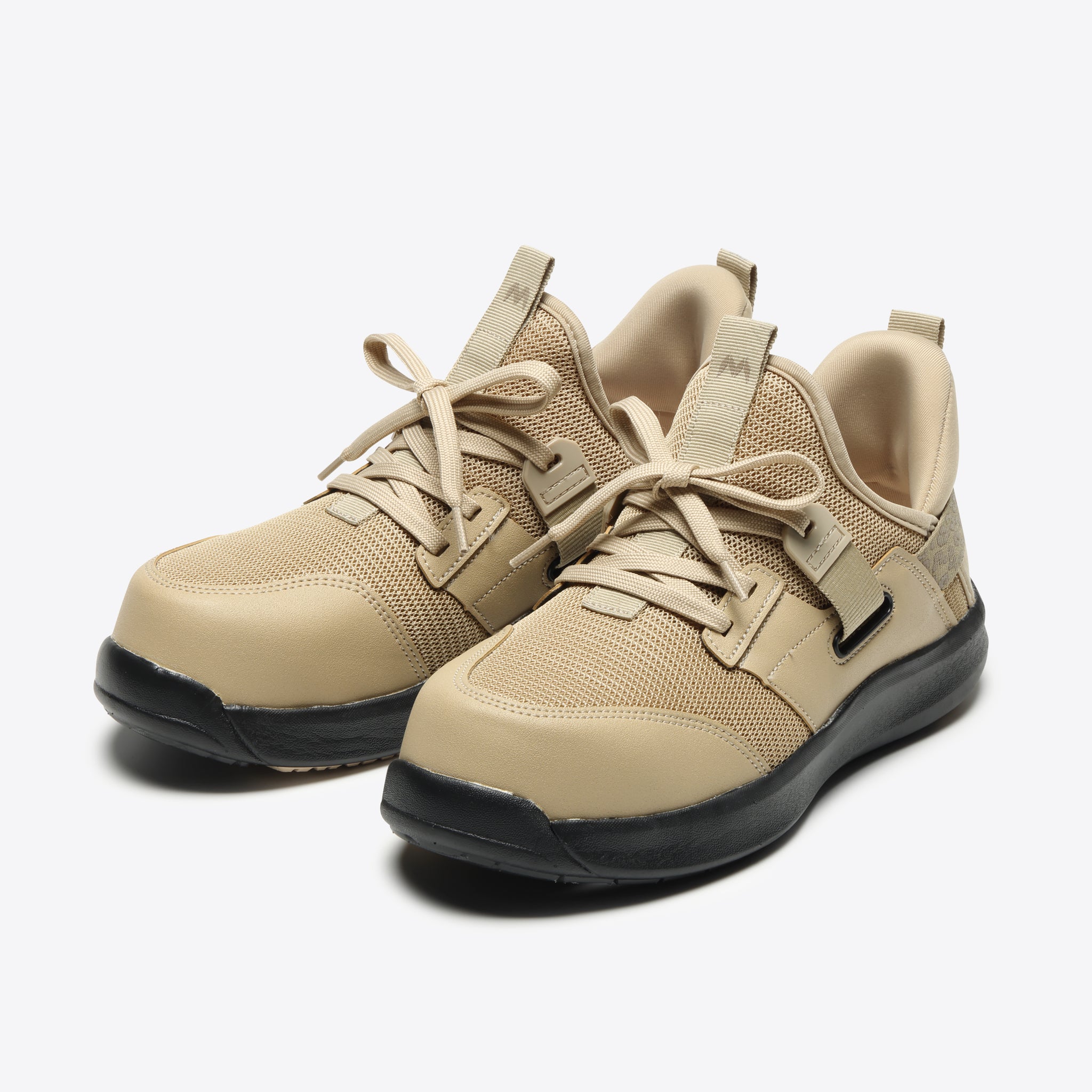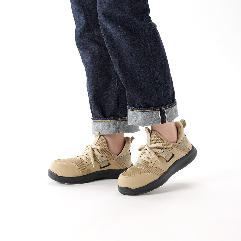 耐久性が必要な場所にラバーパーツを配置した軽量アウトソール。樹脂先芯を組み合わせる事で靴全体を軽く仕上げました。筋力の少ない女性でも無理なく履けるワークシューズです。