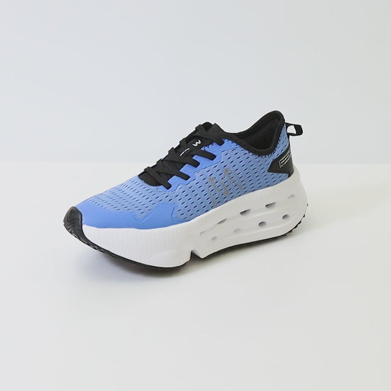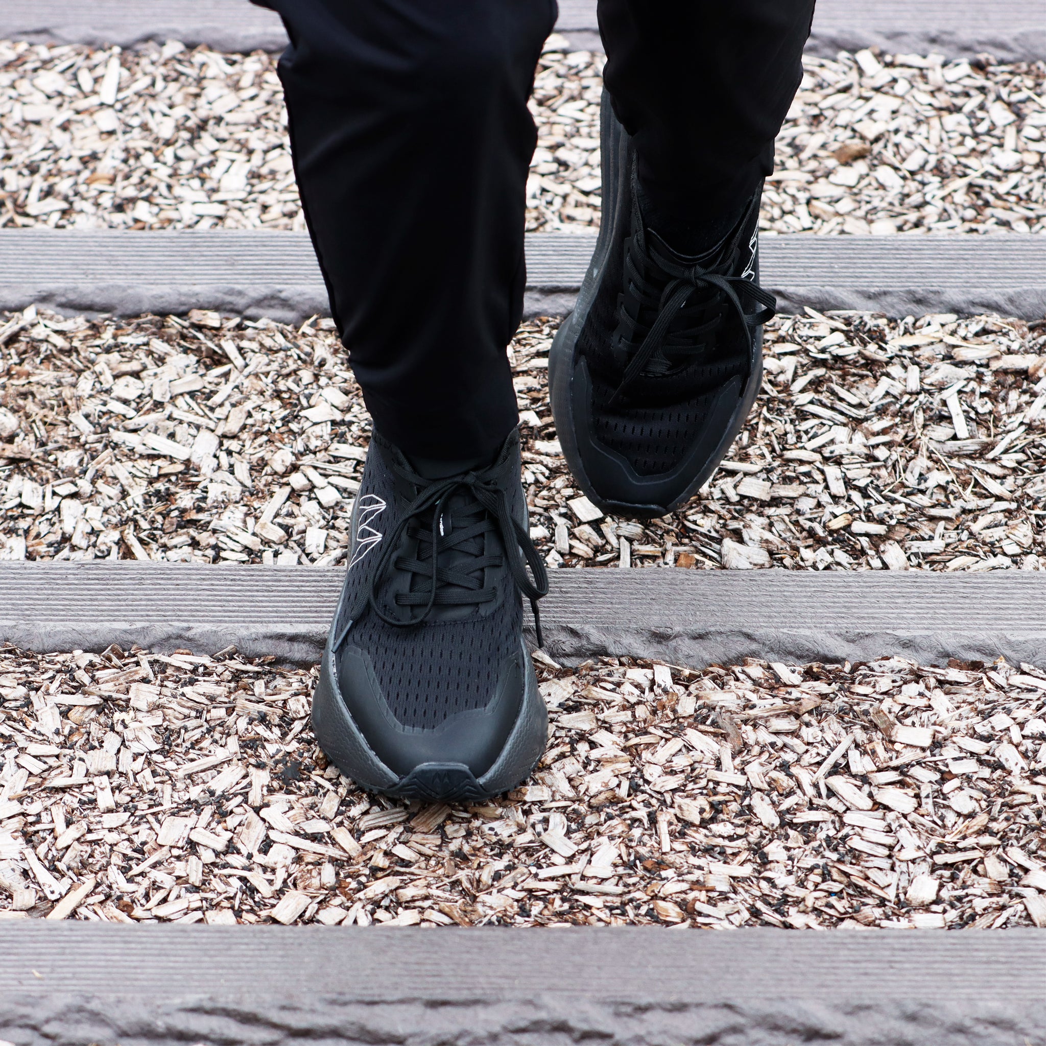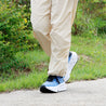 前足・かかと部分が反り上がったソールは、少し重心を前に傾けるだけで、転がるように足が自然と前に進みます。 歩くときの蹴り出しをサポートすることで、少ない力でスムーズに歩けます