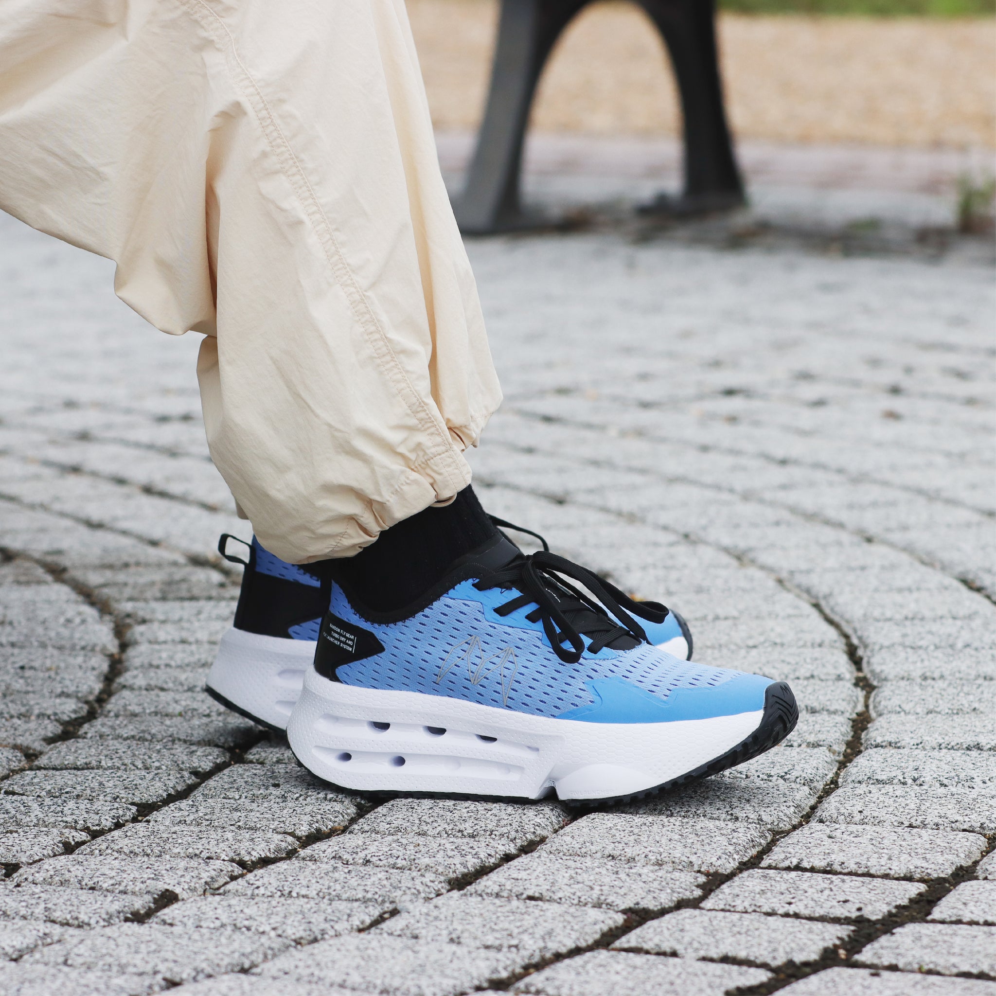 身長が+5cm高くなる厚底ソールは、ボリュームがありながらもシンプルなデザインで自然にスタイルアップ。 厚めのクッションソールが着地のダメージを和らげ、長い距離もラクに歩けます