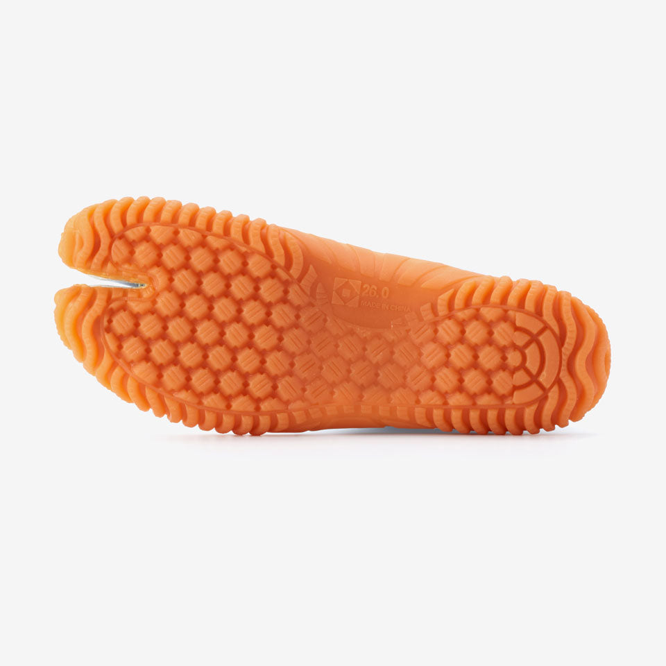 サイドは波型、底部分には一つ一つ独立した意匠デザインを採用。どの部分でも曲がりやすく、接地もしやすい。ジョグタイプ地下足袋のやわらかさを更に引き出します。