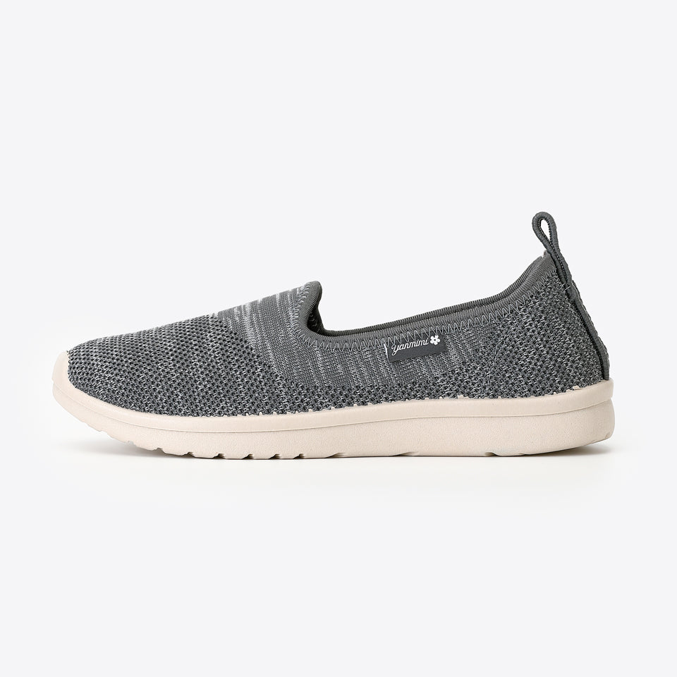 軽量のスリッポンシューズ ヤンミミ#290。アッパーには足にやさしいストレッチメッシュ素材、アウトソールにはクッション性に優れた発泡PVCを採用。アウトソールのPVCは静電気を靴底から逃がす帯電防止配合。冬の乾燥した日も安心です。汚れても丸洗いが可能なウォッシャブル仕様。