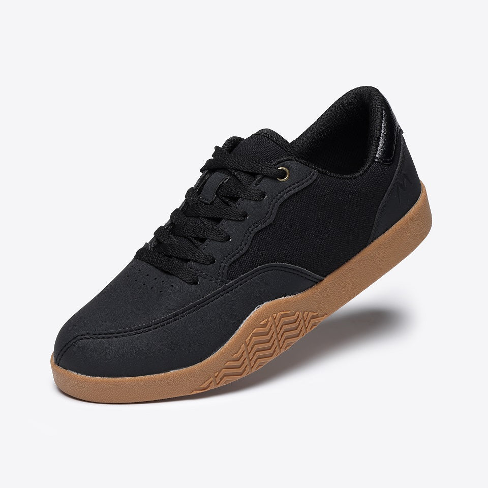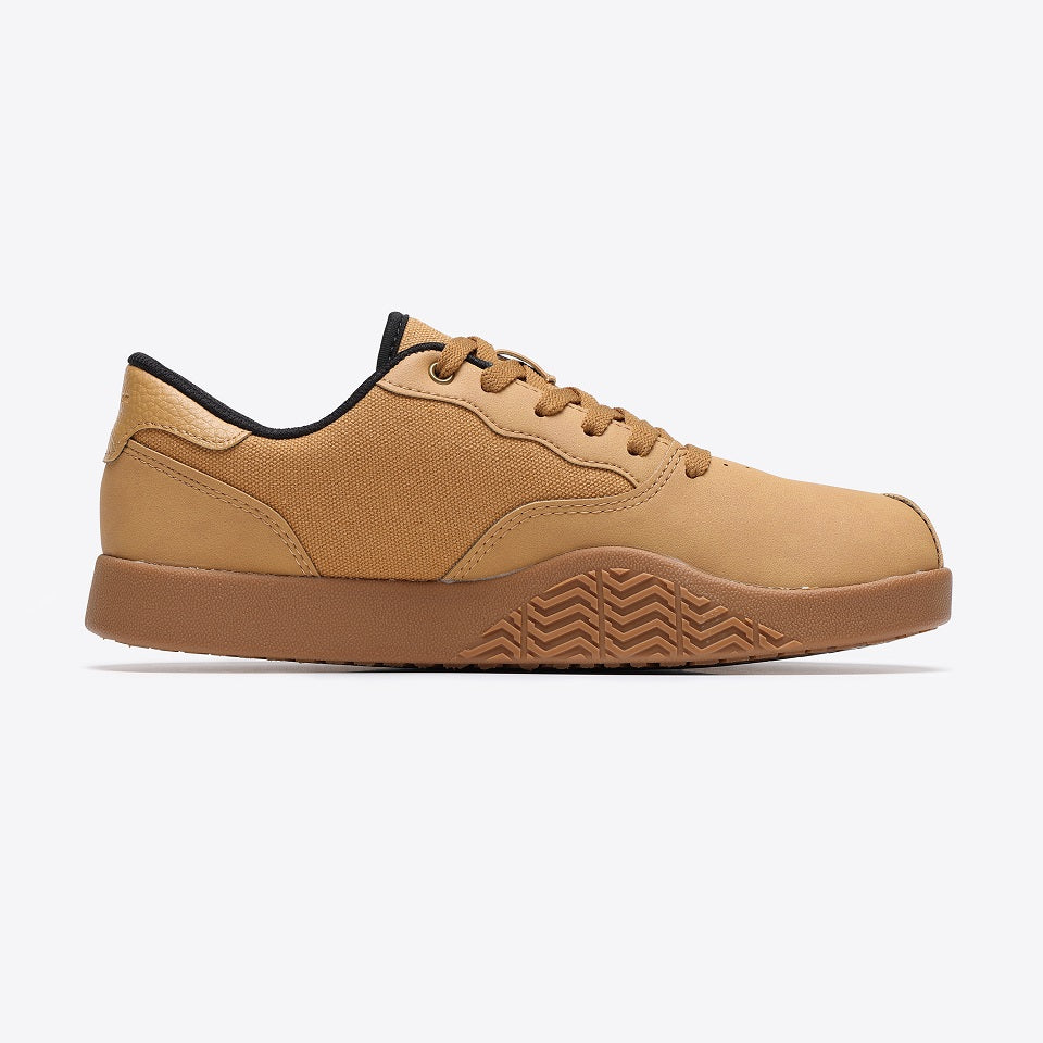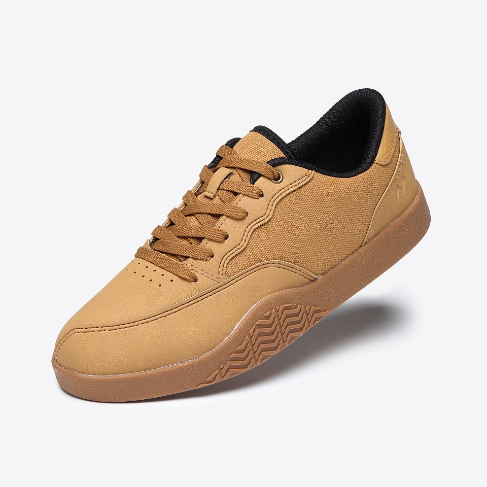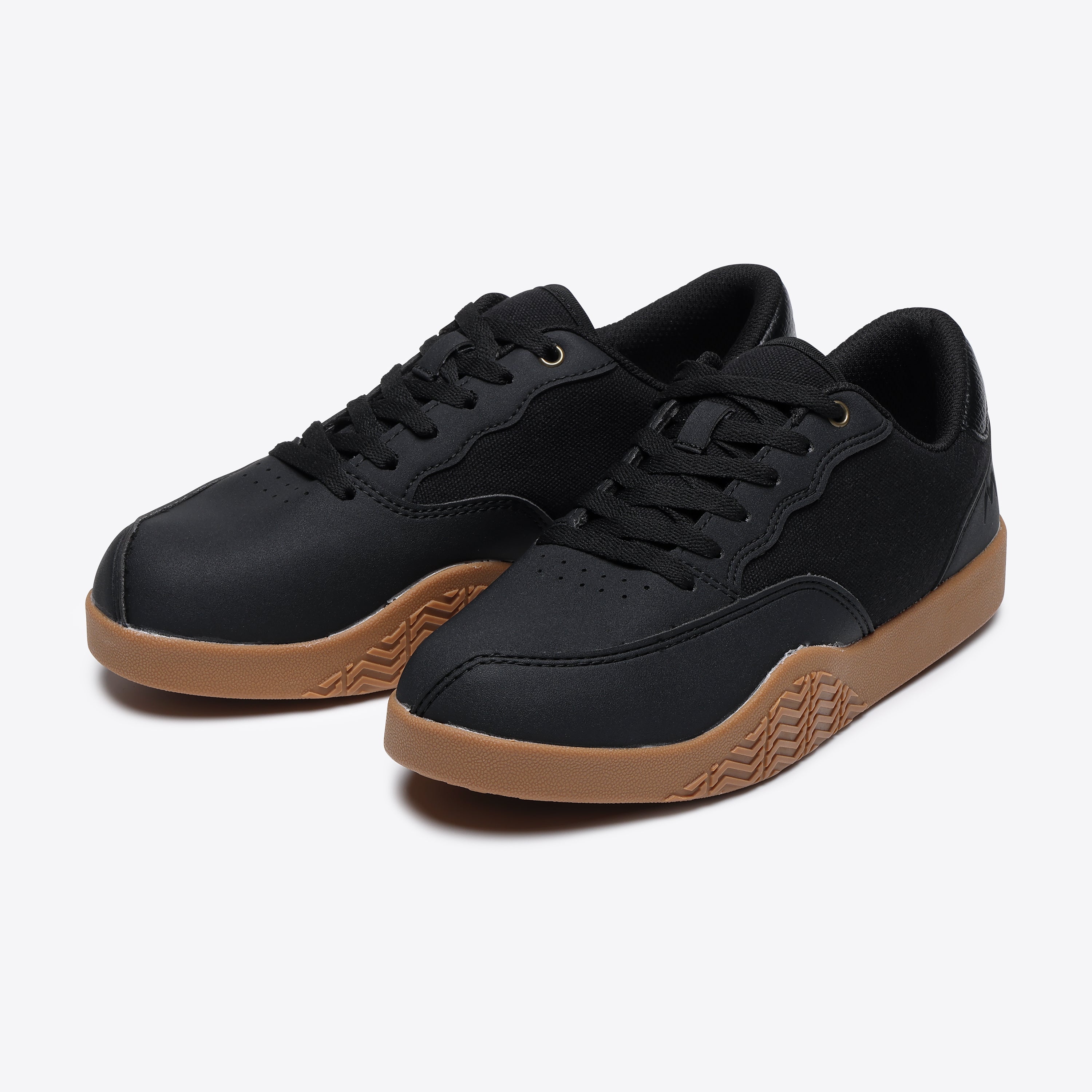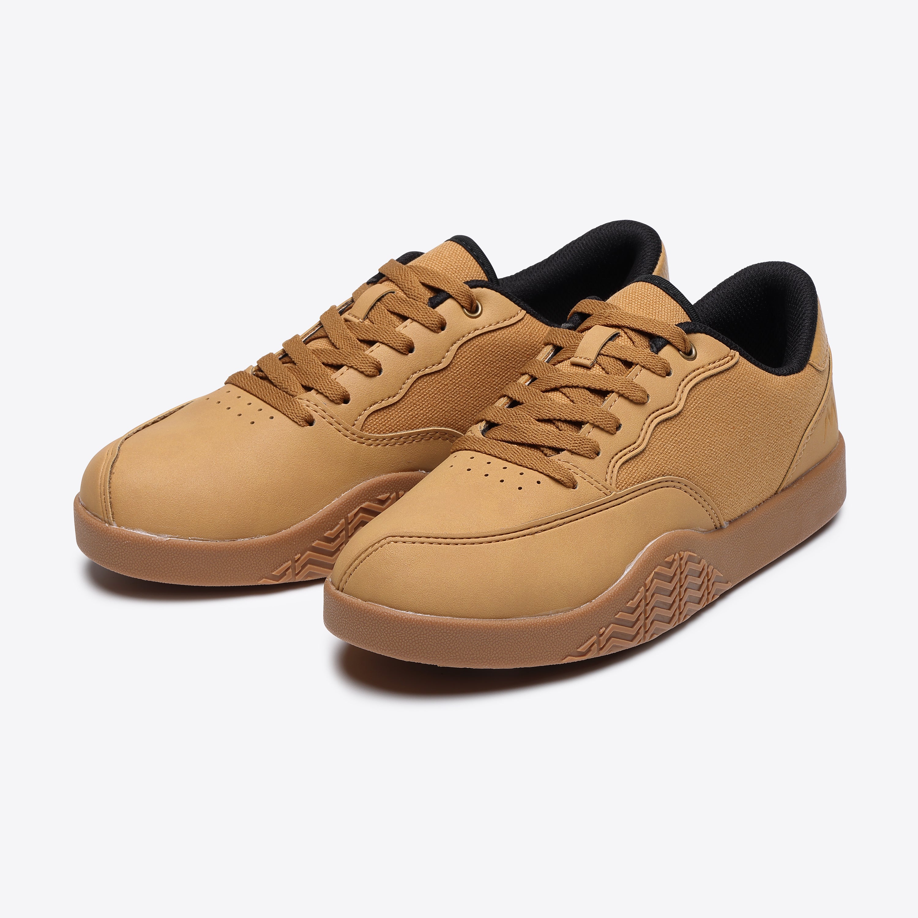 ソールにはワークシューズのノウハウを活かした滑りにくいソールを採用。デッキだけでなく、すべりやすい路面でもしっかりグリップします。アッパーはトリックでダメージを受けやすい箇所を補強したデザインとすることで、靴の強度を高めています。シンプルなデザインなのでスケートボードだけでなく普段使いとしてもオススメです。ブラックとブラウンの2カラー。